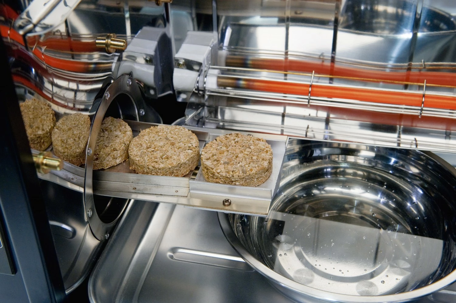 Das Räuchern funktioniert dabei ganz einfach. Ausserhalb des Räucherofens werden die Bisquetten in einer Schiene auf dem Rauchgenerator gestapelt.