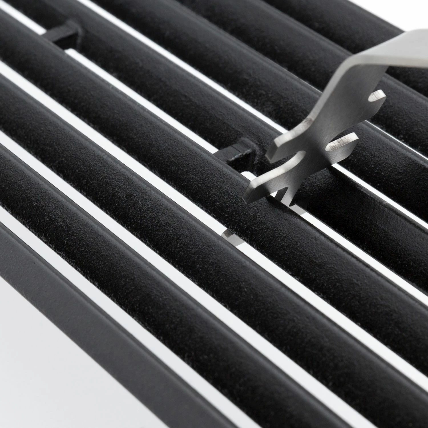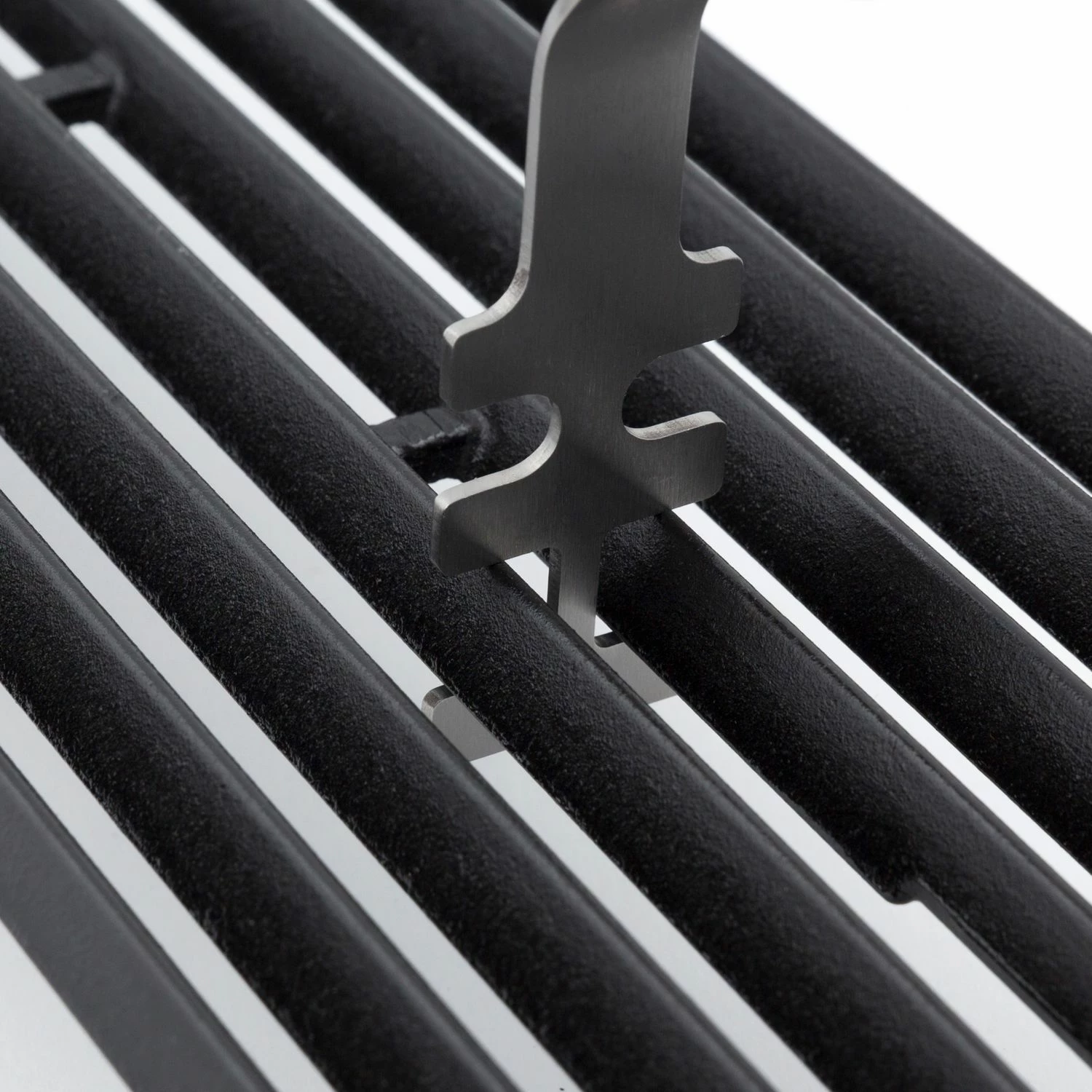 Der Broil King Grillrost Lifter ist ein sehr nützliches Werkzeug für den Umgang mit den neuen Broil King Narrow Einsätzen und ist auch speziell für diesen Einsatz konzipiert. Er erleichtert das Entfernen, Tauschen oder Umplatzieren der Einsätze enorm, kann aber auch mit anderen Grillrosten benutzt werden.