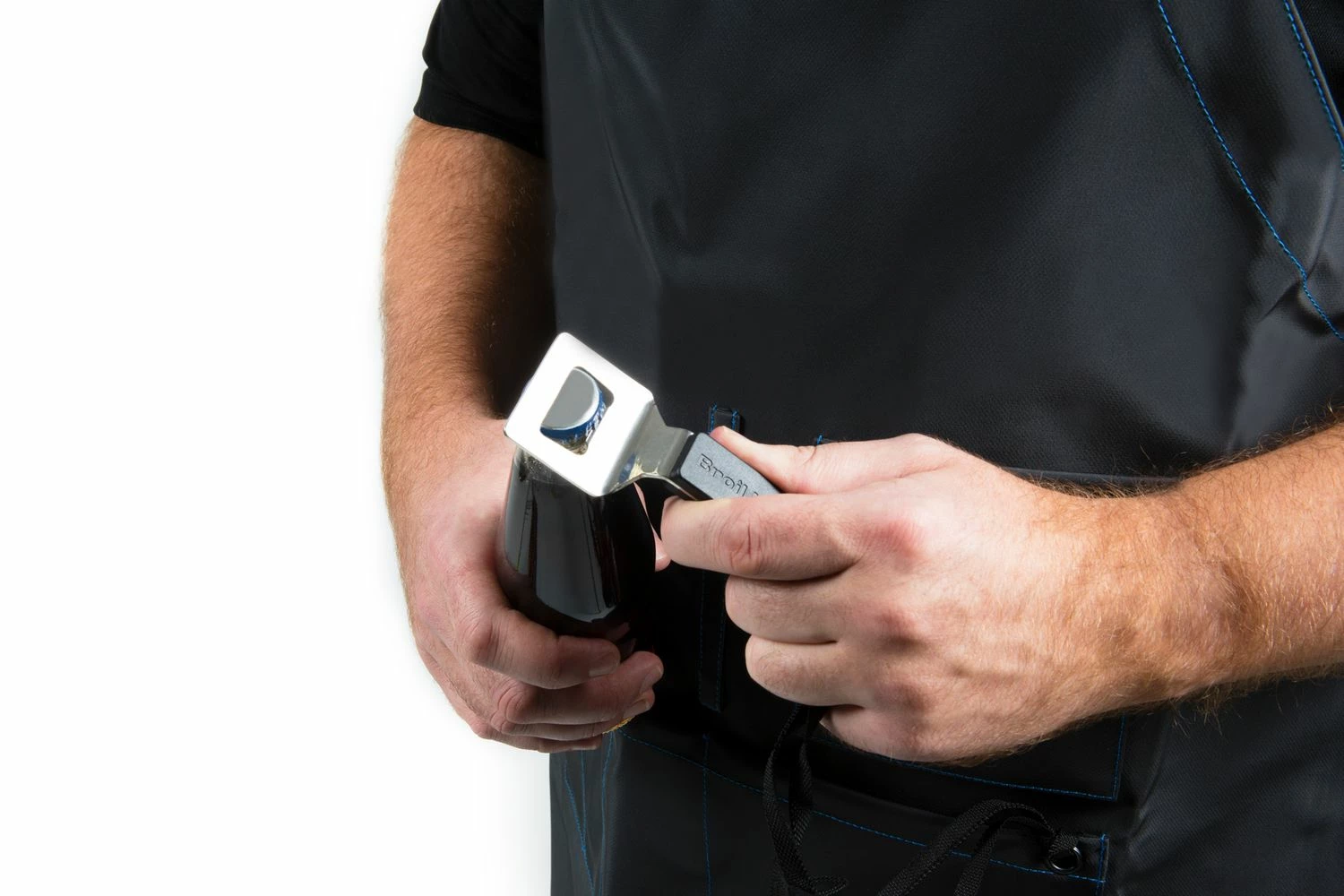 Dafür besitzt die Grillschürze mehrere Taschen und Einschübe, um zB. das Thermometer oder die Grillzange immer am Mann zu haben. Für Getränkeflaschen ist sogar noch ein praktischer Flaschenöffner intergriert!
