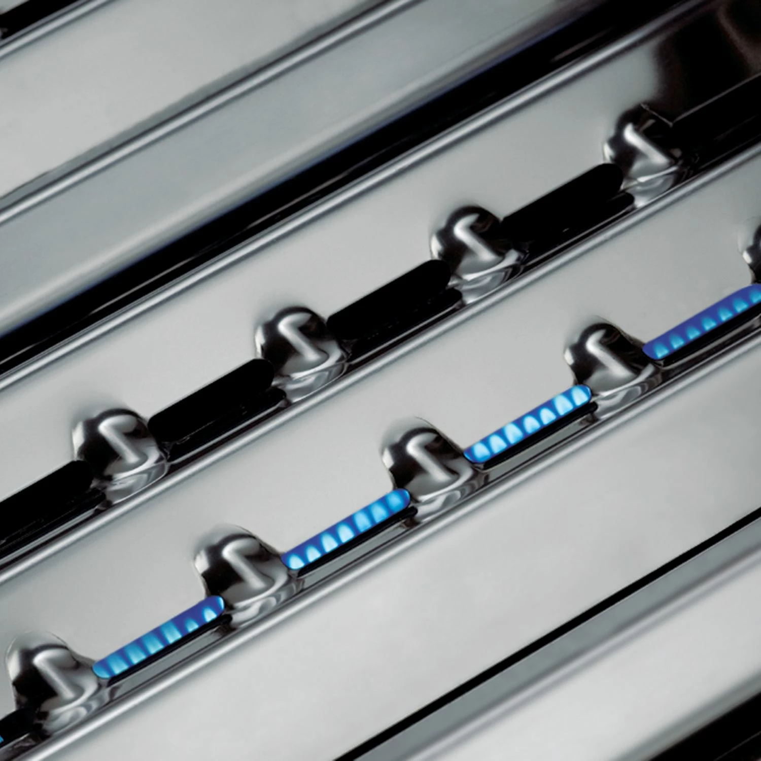 Dank der patentierten Dual Tube Stabbrenner aus Edelstahl erreicht der Regal eine perfekte Hitzeverteilung auf der gesamten Grillfläche. Die leistungsstarken Brenner ermöglichen auch im vorderen Bereich der Grillfläche gleichbleibend hohe Temperaturen.