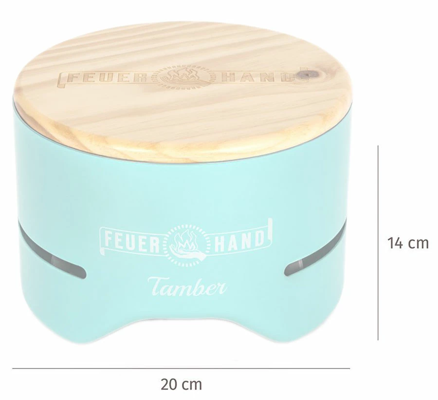 Mit dem farbenfrohen Feuerhand Tamber Mini-Tischgrill bereiten Sie kleine Köstlichkeiten ganz gemütlich direkt am Tisch zu. Dabei überzeugt der kleine Holzkohlegrill mit durchdachten Details.