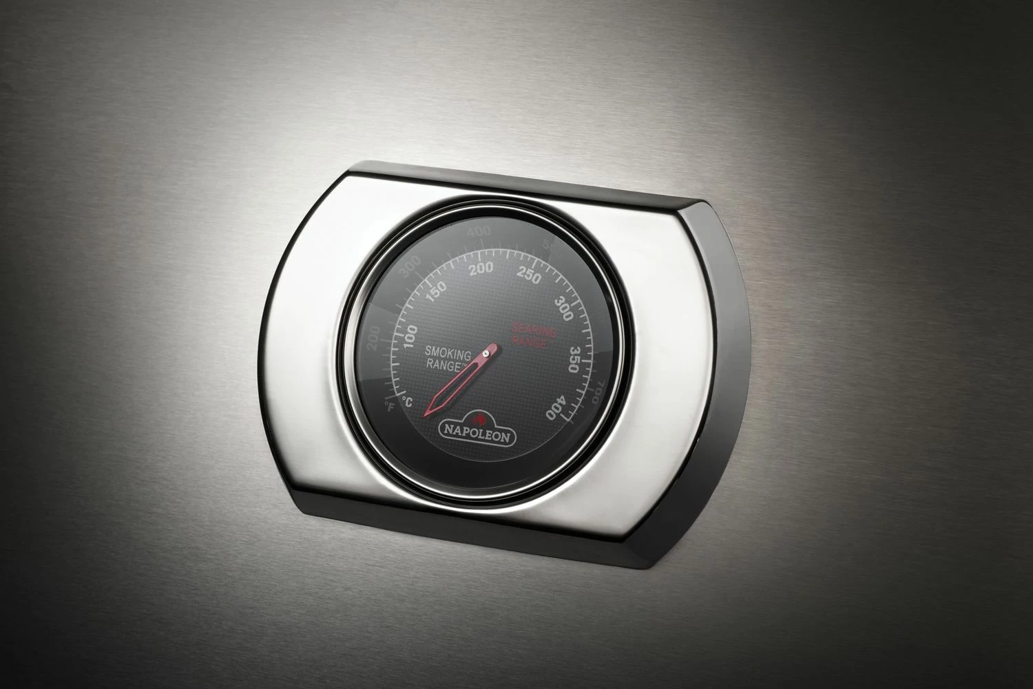 Das Deckelthermometer ACCU PROBE™ zeigt Ihnen zuverlässig die Garraumtemperatur an. Mit einer Skala von 40°C bis 370°C überwacht es den gesamten Temperaturbereich des Geräts.