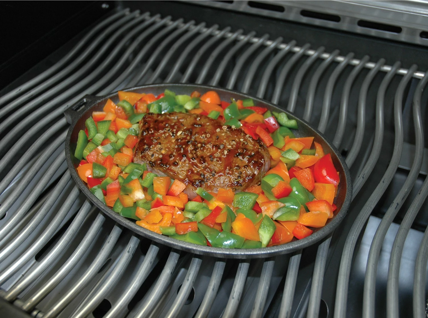 Köstliche Pfannengerichte können Sie mit der gusseisernen Pfanne auch auf Ihrem Grill zubreiten. Die emaillierte Gusseisen Pfanne eignet sich perfekt für die Nutzung auf dem Seitenbrenner, kann aber auch direkt auf dem Grillrost eingesetzt werden.