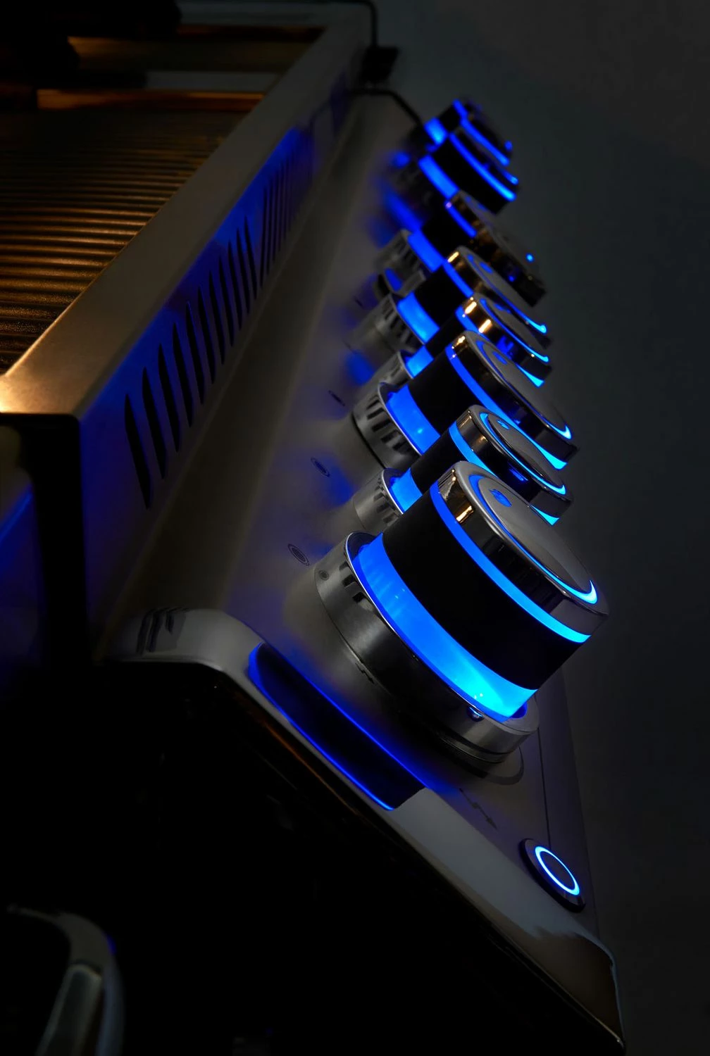 Der Grill ist mit einem „Begrüßungslicht“ ausgestattet. Ein Bewegungsmelder schaltet die Beleuchtung der Drehregler automatisch an. Tolles Highlight: Die zusätzliche Bodenbeleuchtung. Das Napoleon Logo wird direkt vor dem Grill auf den Boden projiziert.