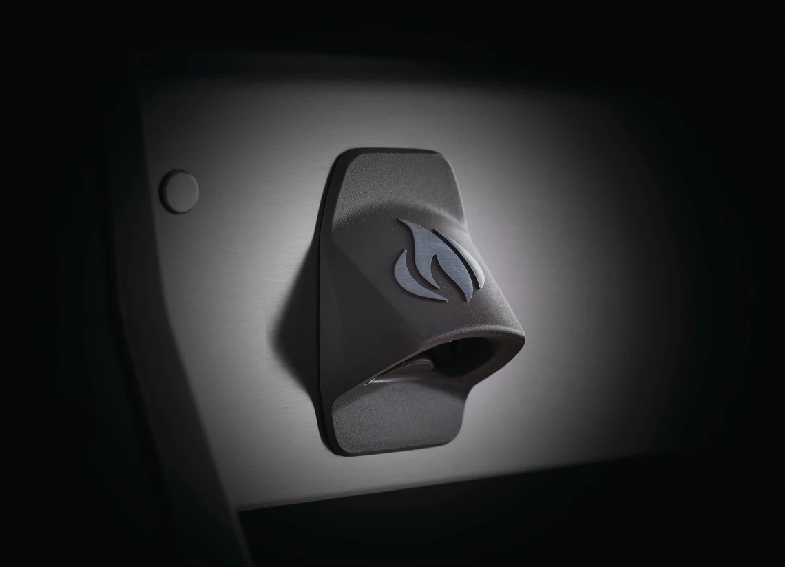 Das innovative JETFIRE™ Zündsystem sorgt mit einer extra Zündflamme für müheloses Zünden der Hauptbrenner. Durch Betätigen der Zündung wird dabei eine extra Düse gezündet. Die entstehende starke Zündflamme entfacht dann den eigentlichen Brenner. Das System sorgt für eine noch einfachere und schnellere Zündung Ihres Grills. Mühsames wiederholtes Zünden entfällt somit.