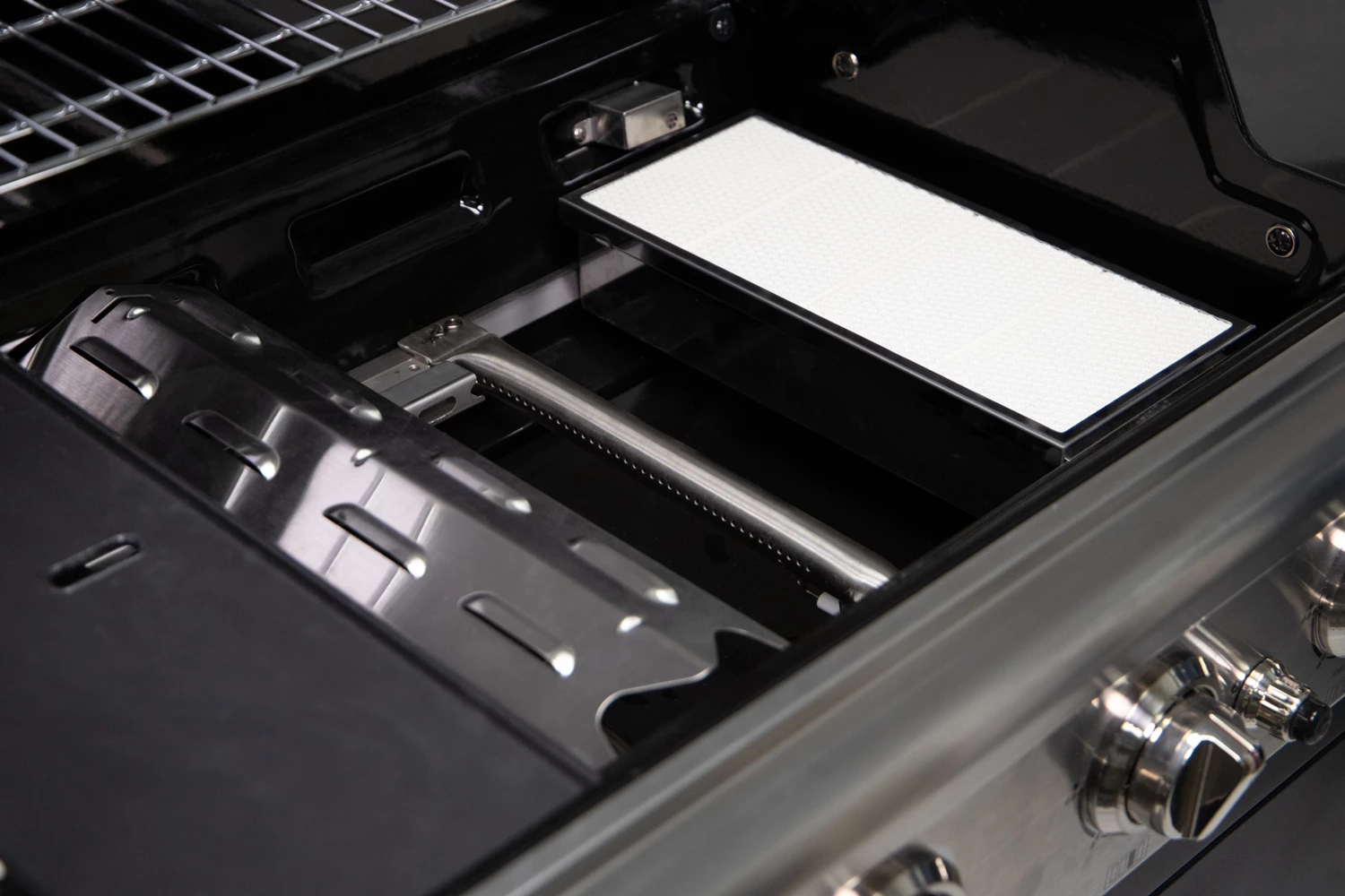 - Infrarotbrenner mit satten 6 kW – integriert in die Grillfläche