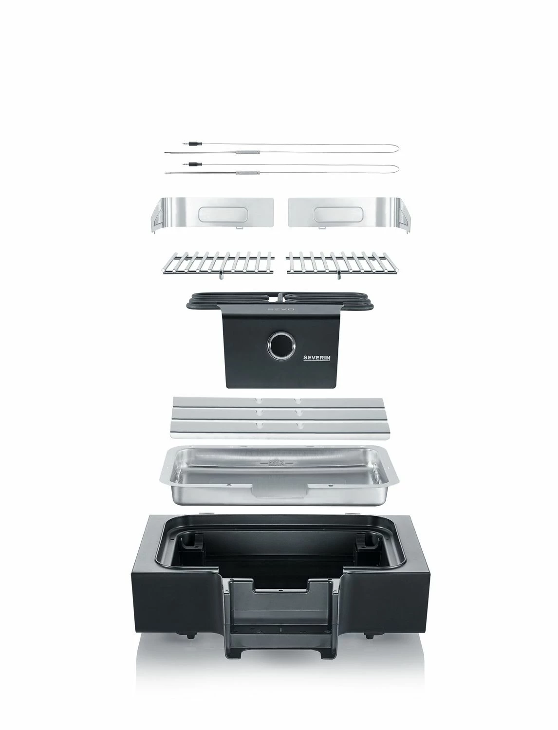 Die Reflektorschale der Severin Elektrogrills ist so konstruiert, dass die Hitze der Heizspirale nicht an das Wasser abgegeben wird, sondern von den Reflektorinseln zurück gestrahlt wird. So entsteht eine besonders effektive und vor allem hohe Hitze direkt am Grillrost. Die Ergebnisse des SEVO G Elektrogrills stehen einem Holzkohle- oder Gasgrill damit in nichts nach. Durch diese Technik entsteht mitunter auch nochmal deutlich weniger Rauch als bei herkömmlichen Elektrogrills – optimal beim Einsatz auf dem Balkon oder als Tischgrill.